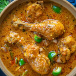Klassisches indisches Hühnercurry mit Tomaten-Zwiebel-Basis.