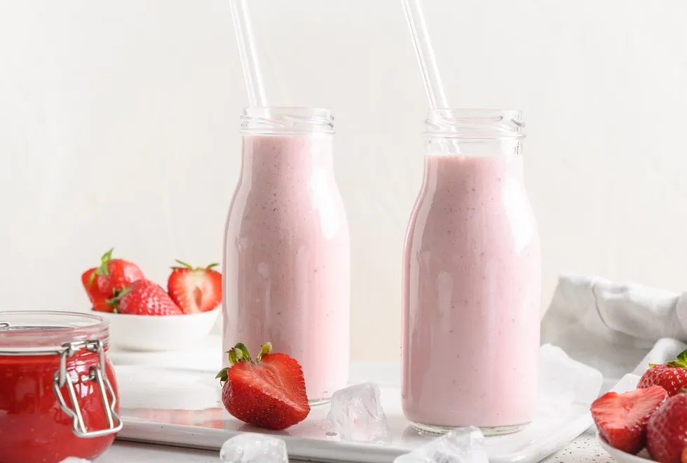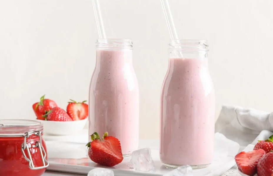 Fruchtiges Joghurtgetränk mit Erdbeergeschmack.